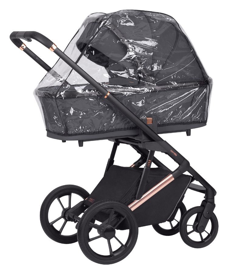 Утеплене укриття на ніжки захистить малюка від негоди, а всі необхідні речі (від ковдри до підгузків) помістяться в закритому кошику з доступом на блискавці.