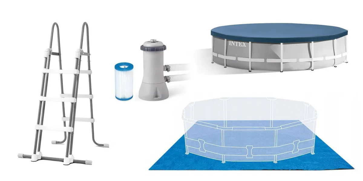 Комплектація басейн, фільтр-насос, сходи, підстилка, тент, інструкція.